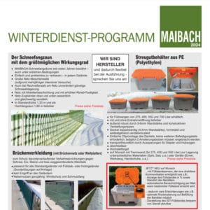 Schneefangzäune mit dem größtmöglichen Wirkungsgrad und unsere wichtigsten Winterdienstprodukte finden Sie im aktuellen Winterdienst-Programm.