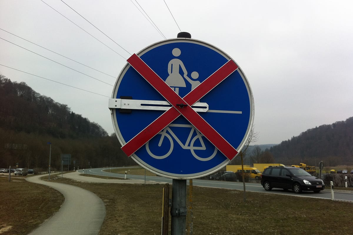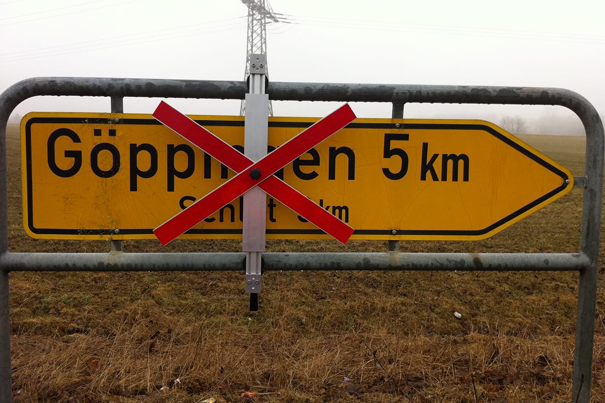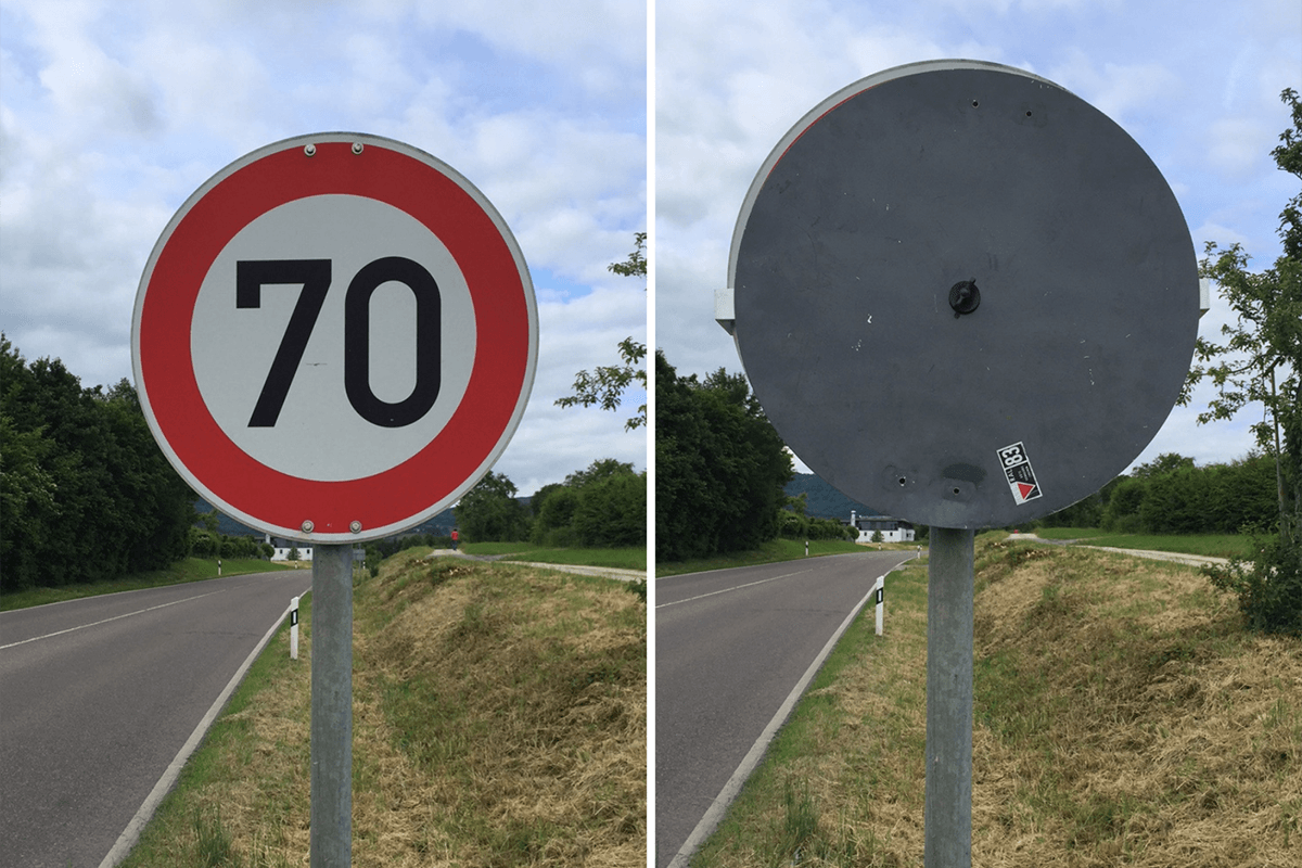 Unsere innovative MAIBACH-Auskreuzvorrichtung aus Alu besticht durch einfachste Handhabung und sekundenschnelle Montage am Verkehrsschild bzw. Wegweiser.