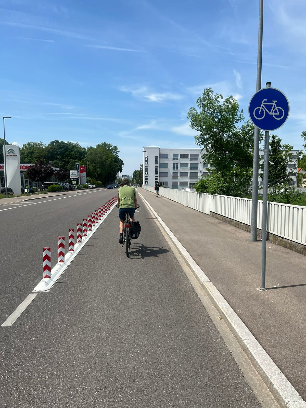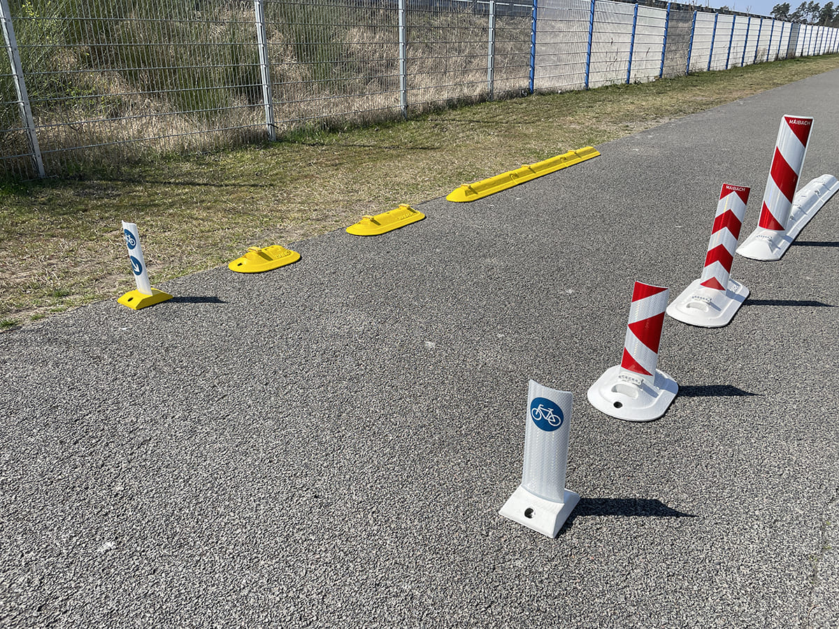 Individual solutions for safey cycling lanes. The Guide barrier and Delineators are available in different colours.