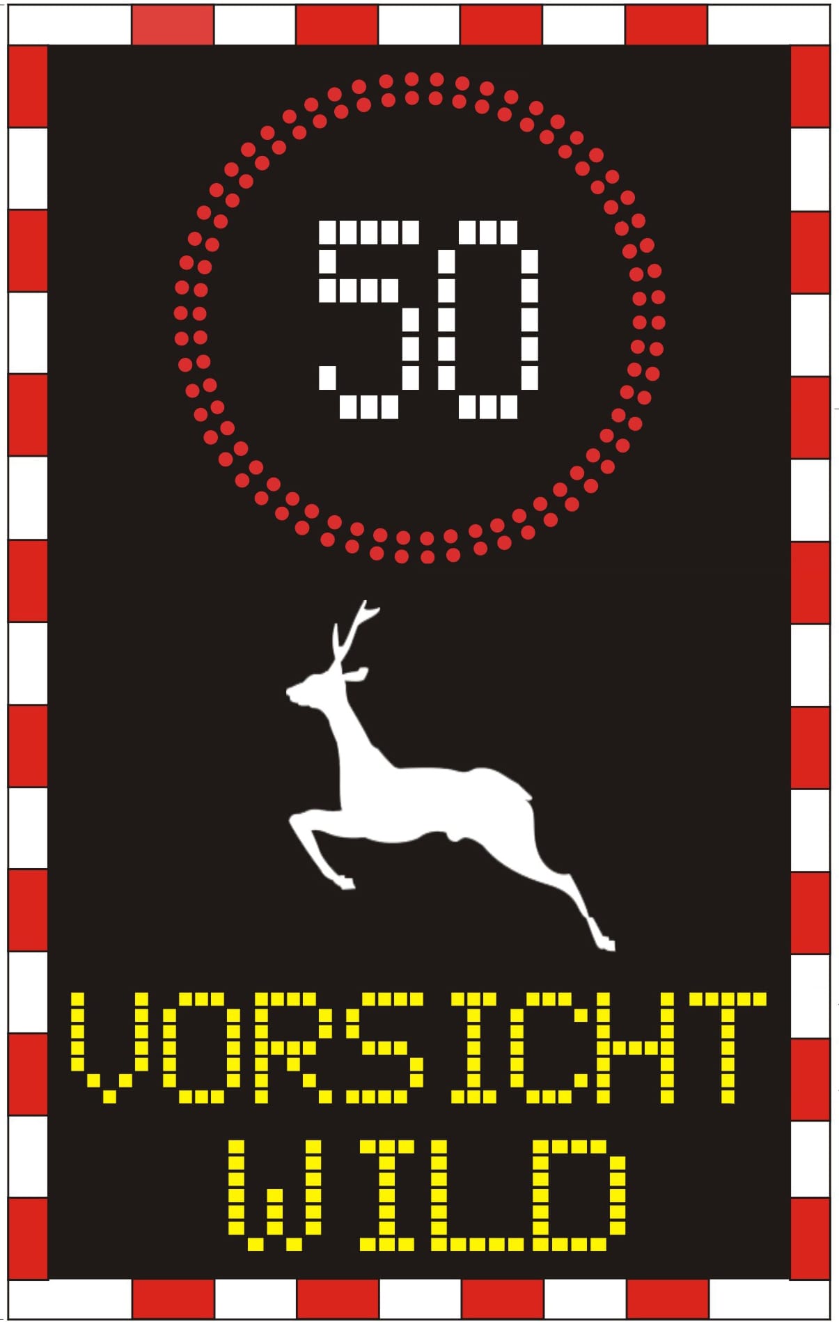 The display is activated only when an approaching vehicle exceeds the allowed maximum speed (individually adjustable, the example below shows 50 km/h).