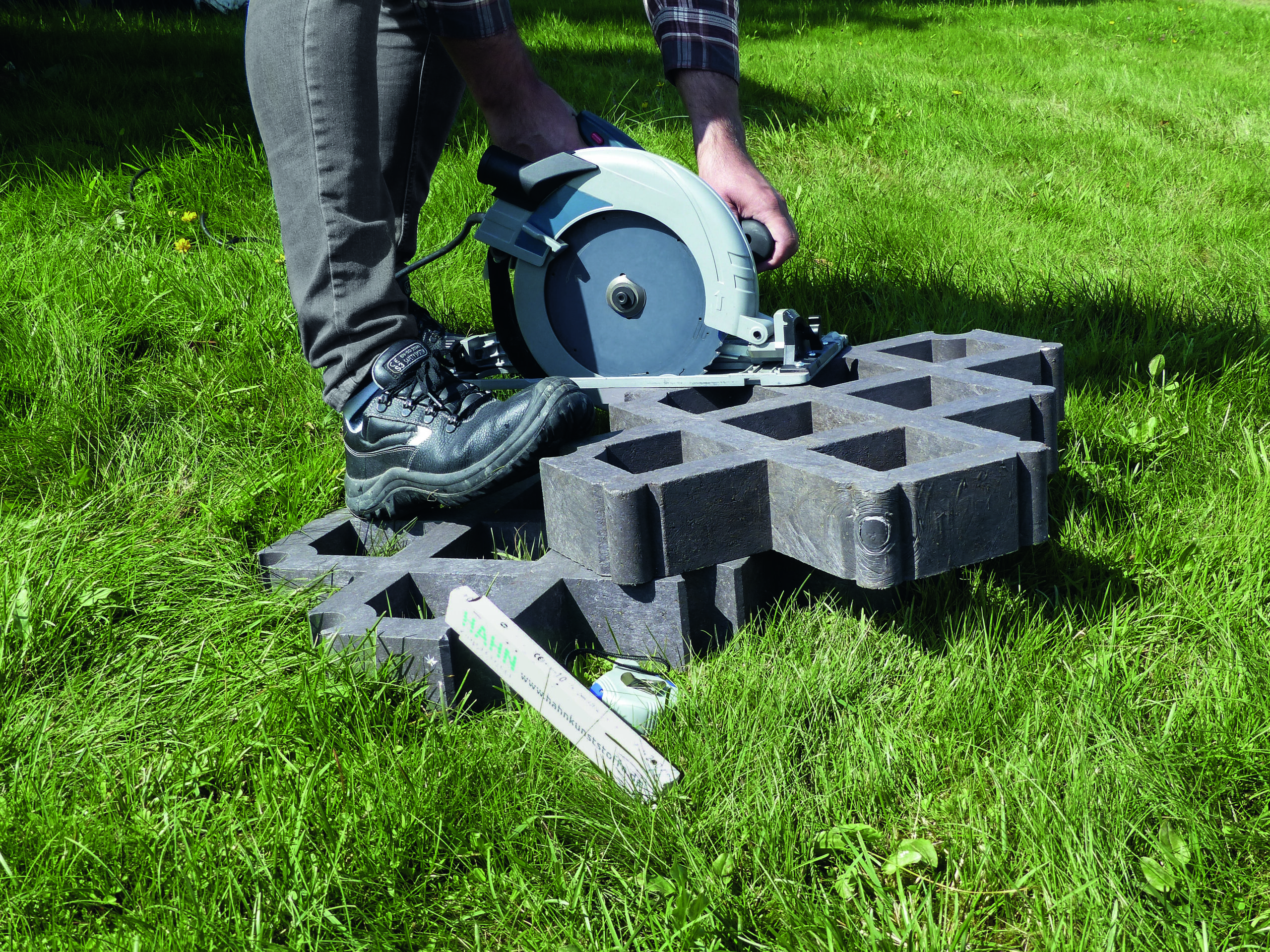 Our grass grid plates are made of robust, high-quality recycled plastic with a grained texture – a sustainable and environmentally friendly alternative to conventional concrete paving. They are ideal for driveways, parking areas, public spaces, or road verges. Their simple installation makes them particularly easy to install, and they impress with their high stability (SLW 60 according to DIN 1072) and long lifetime.