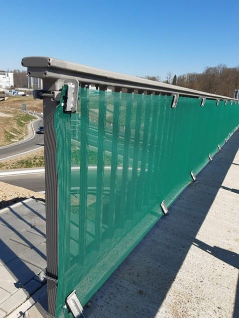 Fixing construction and net have been tested by the University of Karlsruhe and are stability proved for wind speed up to 145 km/h. Tests are based on 1,20 m distance between net holders. Test report available on request.