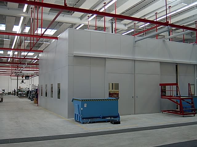 MAIBACH Lärmschutzkabinen aus Stahlblech, Aluminium oder Edelstahl vom Typ M 40 bis M 100 sind selbsttragend. Für Servicezwecke können Teilbereiche leicht demontiert und wiedermontiert werden, ohne dass die Standfestigkeit der Kabine beeinträchtigt wird.
