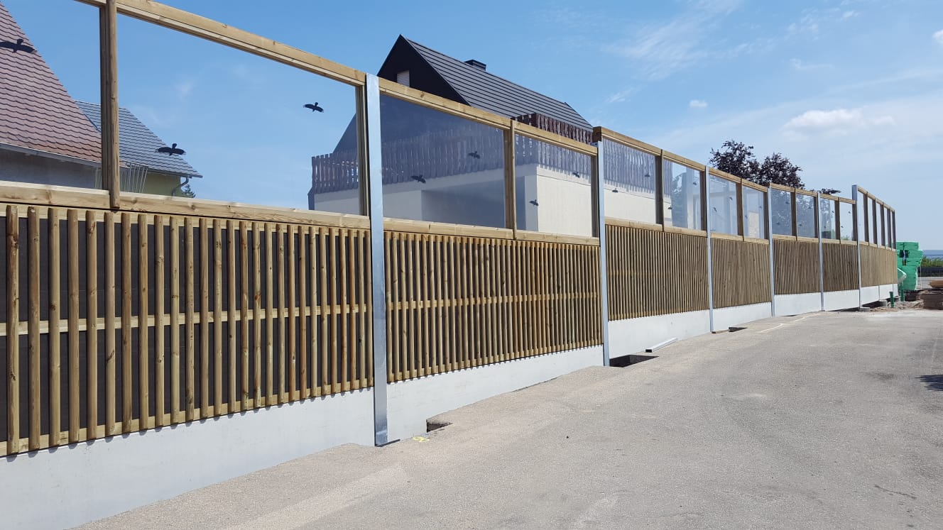 Acrylelemente mit einem Rahmen aus Aluminium oder Holz können zur Kombination mit geschlossenen Systemen verwendet werden, um eine Transparenz zu erreichen und an gewünschten Stellen den Blick nach außen ungehindert zu ermöglichen.
