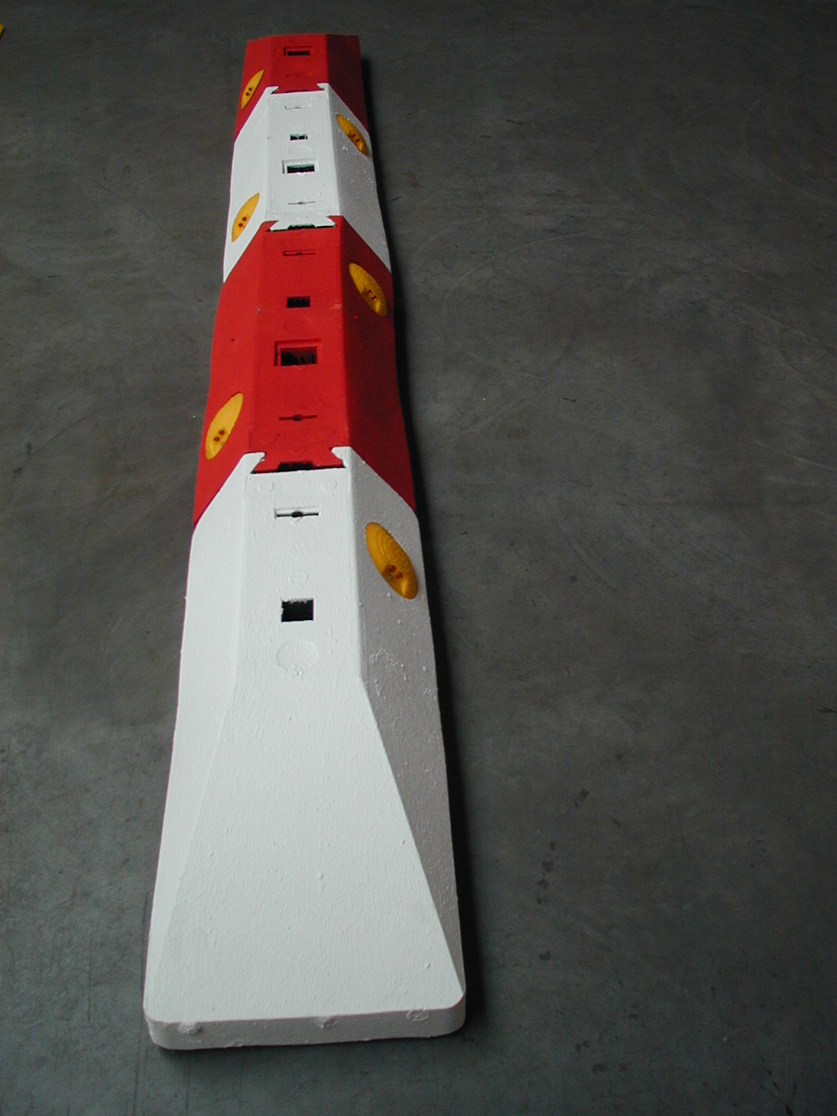 Der Auf- und Abbau erfolgt durch einfache Steckverbindung an den Stirnseiten (Schwalbenschwanz). Weitere Besonderheiten sind: je 2 angebrachte Markierungsnägel R4 für erhöhte Nachtsichtbarkeit, eingearbeitete Handgriffmulden, Batteriefach, Gummifüsse an der Unterseite und Einstecköffnungen 60 x 60 mm und 40 x 40 mm.