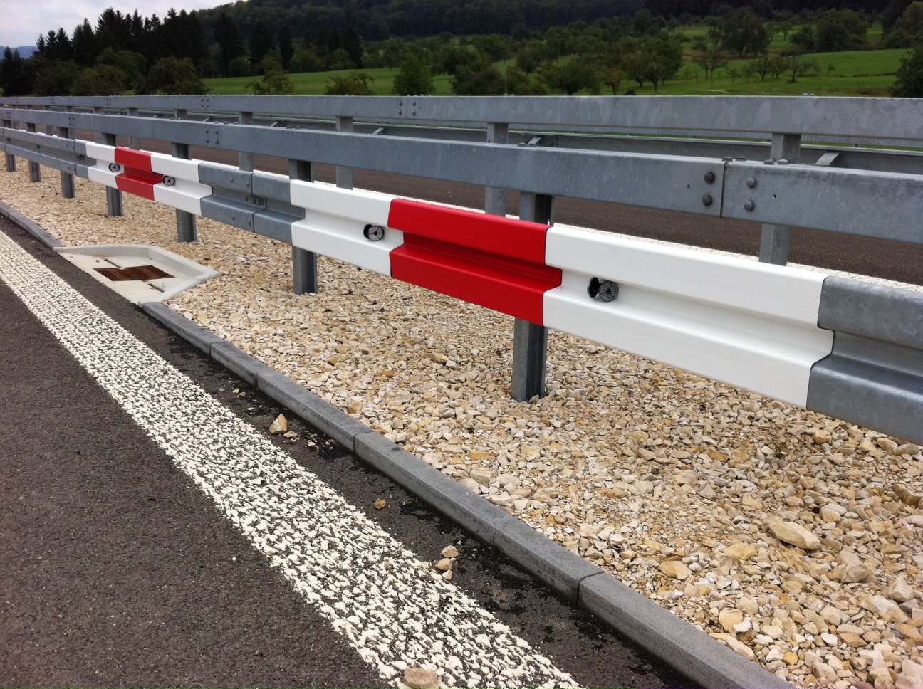 Die Elemente sind aus einem schlagfesten, UV-stabilisierten, witterungs- und tausalzbeständigen Kunststoff. Lieferbar für Stahlschutzplanken Typ A und B.
