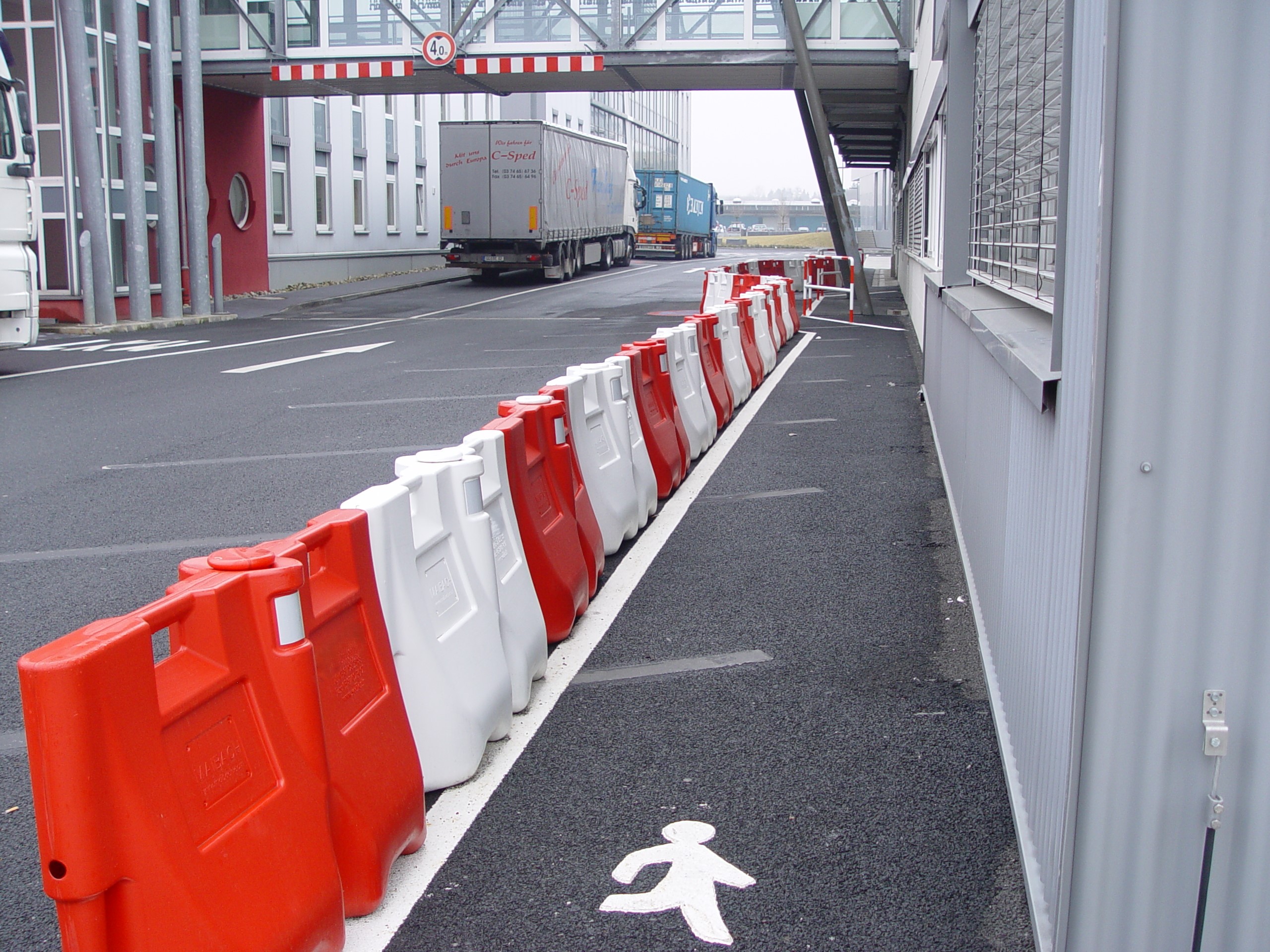 Unsere MAIBACH-Leitwandelemente aus Polyethylen sind aufgrund ihres geringen Eigengewichtes (im Leerzustand) sehr einfach zu transportieren, können aber durch Befüllung eine hohe Standfestigkeit erreichen. Durch das integrierte Stecksystem können die Leitwände ohne weiteres Werkzeug sekundenschnell verbaut werden und sind für häufig wechselnde wie auch längerfristige Standorte geeignet. Des Weiteren haben die Elemente durch Ihre Rot-weiße Farbgebung sowie der angebrachten gewölbten Reflexfolie eine hohe Signalwirkung bei Tag wie Nacht.