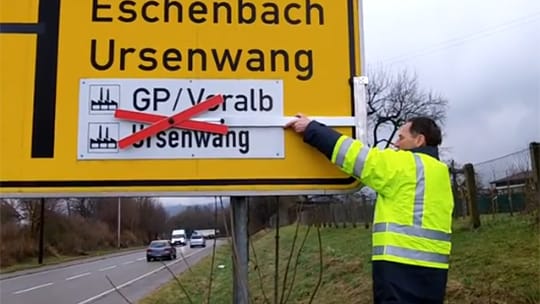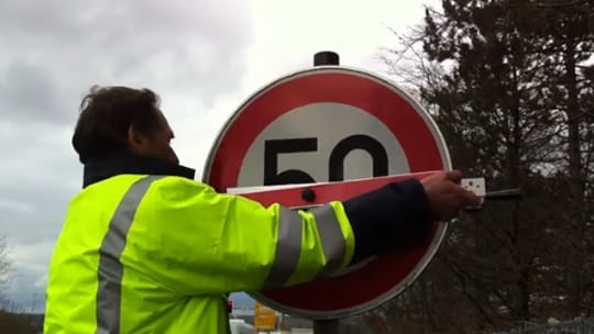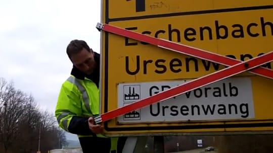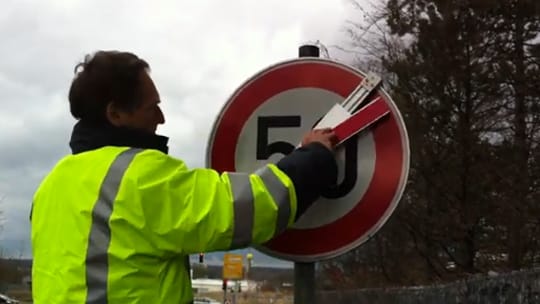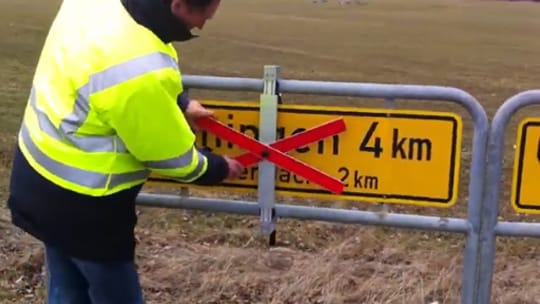 Unsere neue und innovative MAIBACH-Auskreuzvorrichtung aus Alu besticht durch einfachste Handhabung und sekundenschnelle Montage am Verkehrsschild bzw. Wegweiser.