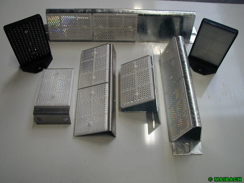 Unsere Kammerreflektoren (BAST-geprüft) sind verschweisst, d.h. wasser- und luftdicht, sowie unverspiegelt. Die Reflektoren sind unempfindlich gegen Schlag- und Stoßbelastungen und können in Klasse I oder Klasse II geliefert werden.