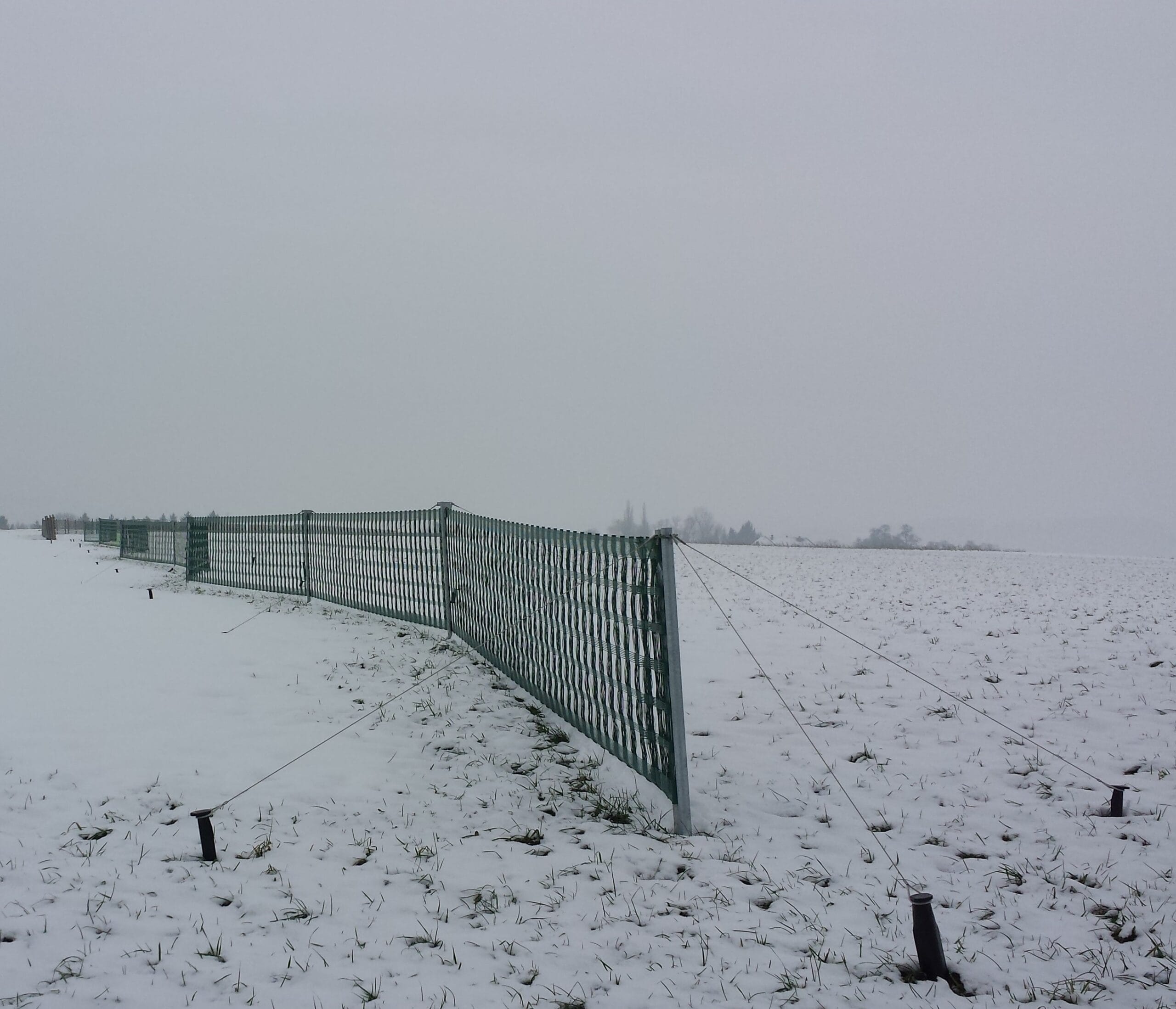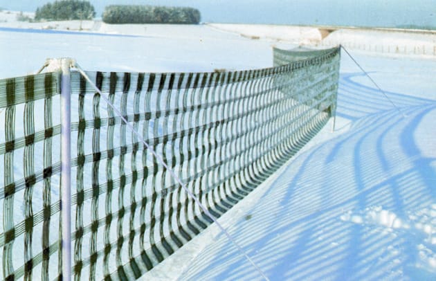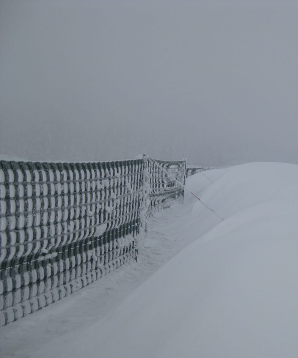 Als ein wirkungsvolles Mittel, um Schneeverwehungen zu reduzieren, haben sich künstliche Hindernisse erwiesen. Hierzu bedient man sich in der Praxis mit Schneefangzäunen. Seit vielen Jahrzehnten werden MAIBACH-Schneefangzäune als effektive, vorbeugende Hilfe eingesetzt. Auch in Zeiten moderner Schneefräsen und Schneeschleudern sind sie in der Praxis unersetzlich. Dadurch wird erreicht, dass sich die Schneeverwehungen in Windrichtung vor (Stauwehe) und / oder hinter (Sogwehe) dem Schneefangzaun ansammeln. Die Bodenfreiheit in Höhe von 30 cm dient außerdem dazu, dass das System nicht eingeweht wird oder gar unter Schneedruck leidet. Verschiedene Varianten stehen dabei (je nach Art der Schneebelastung) zur Auswahl. MAIBACH-Schneezäune bewähren sich bereits seit 1969, wurden aber immer wieder modernisiert.